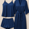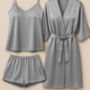 3-piece set – Includes camisole, shorts, and robe for complete nightwear styling.