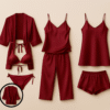 Indulge in elegance and comfort with this premium 7-piece satin sleepwear and lingerie set. Designed for modern women, this luxurious collection includes a satin robe, camisole, shorts, pants, slip dress, bra, and panty — giving you a complete wardrobe for both relaxing nights and stylish lounging. Made from silky satin fabric, each piece offers a flattering fit, smooth texture, and chic appeal. Perfect for self-care, gifting, or elevating your nighttime style, this set ensures versatility, comfort, and a touch of sophistication.