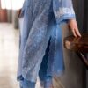 Organza Embroidered border for front back and 4 sides chalk lace.