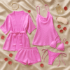 Luxury Satin Sleepwear Trio for Women | Robe, Slip Dress & Halter Bikini Set | Free Size (DC-5001)