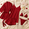 3-Piece Luxury Combo – Includes satin robe, slip dress, and halter bikini set.